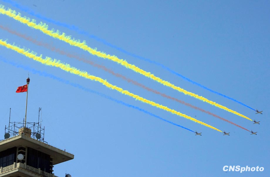 國慶60周年閱兵10月1日上午在天安門廣場成功舉行。由人民解放軍、武裝警察部隊和民兵預備役部隊8000余名官兵組成的受閱方陣接受檢閱。中新社發 湯彥俊 攝