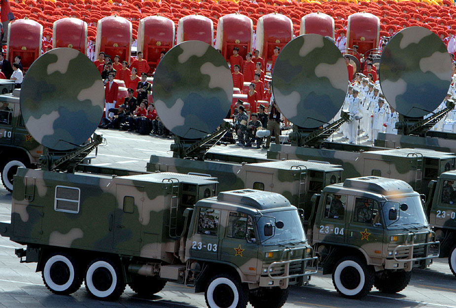 2009年10月1日,中華人民共和國成立60周年慶祝大會在北京舉行。圖為通信兵方隊接受檢閱。中新社發(fā) 任晨鳴 攝