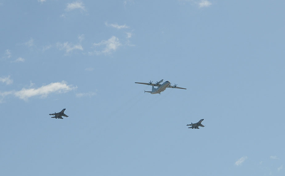 2009年10月1日,中華人民共和國成立60周年慶祝大會在北京天安門廣場舉行。圖為預警機梯隊通過天安門廣場上空。中新網記者 攝