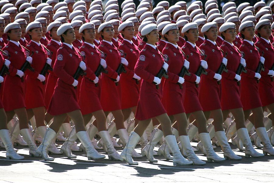 2009年10月1日,北京,首都各界慶祝中華人民共和國(guó)成立60周年大會(huì)在北京舉行。圖為閱兵式上英姿颯爽的女民兵。