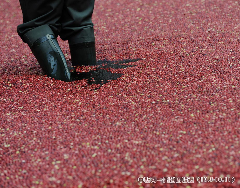 近日,美國果汁業巨頭在洛克菲勒大廈門前搭建起一個約140平方米的池塘,并在池塘里放入了近千公斤的曼越莓鮮果,以慶祝該公司曼越莓的豐收。來源:中國新聞網