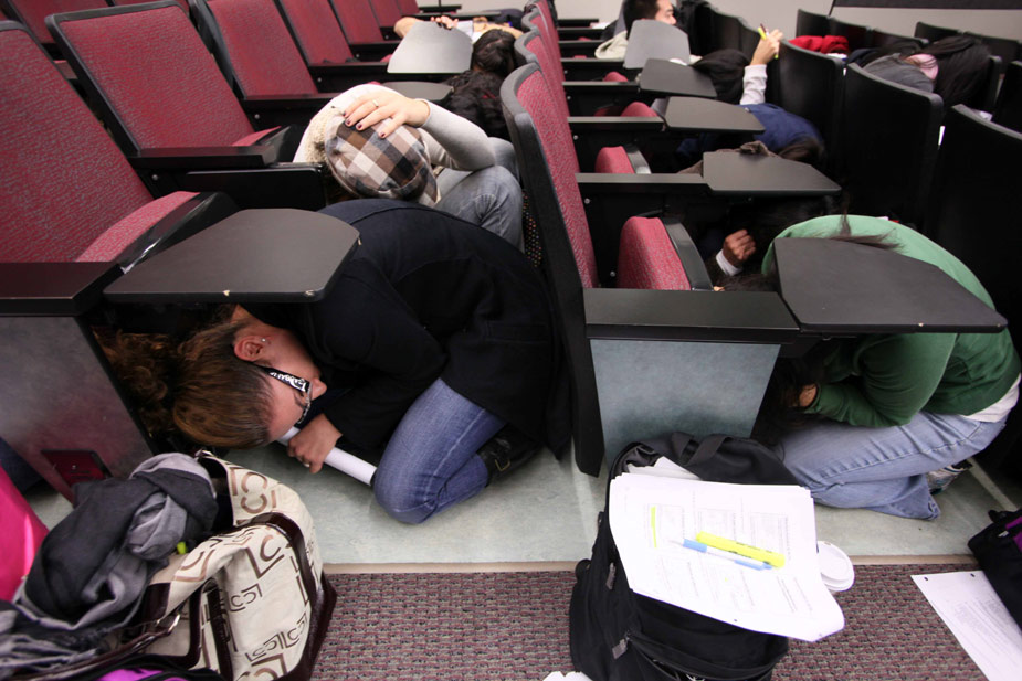 當地時間10月15日,超過一千萬加州居民參加了美國有史以來最大地震演習,以紀念舊金山大地震二十周年。圖片來源:中國新聞網
