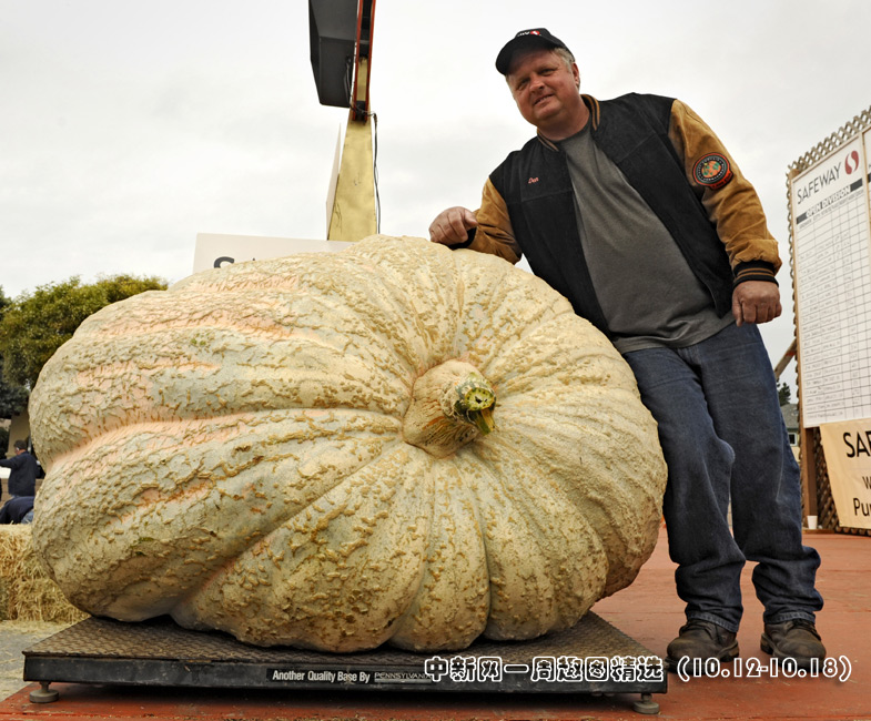 10月12日,美國加利福尼亞州農場主Don Young種植的南瓜以1658磅(約752.06公斤)打破世界紀錄。圖片來源:中國新聞網