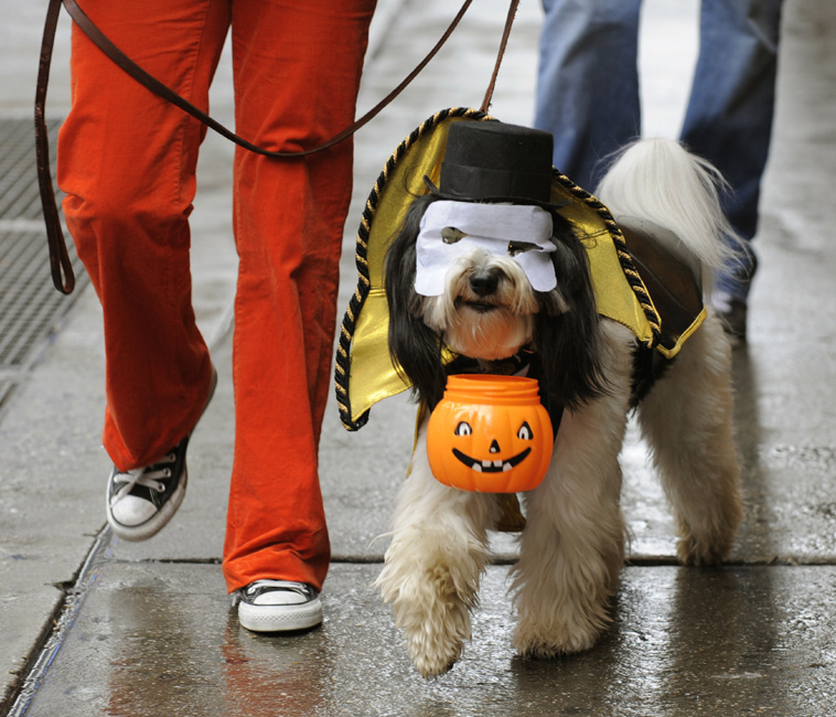 10月18日,在美國紐約時報廣場,眾多小狗在此參加第5屆年度狗狗化妝舞會表演。主辦方稱,這一活動的目的在于喚起人們對無家可歸和遭遺棄動物的關注。