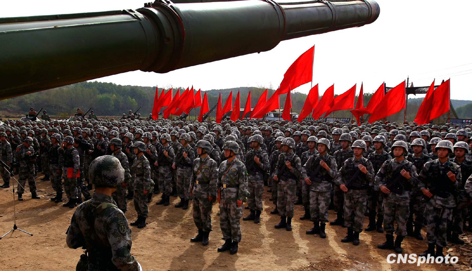 解放軍濟南軍區“前鋒-2009A”軍事演習,將于10月21日在某合同戰術訓練基地舉行,參加演習部隊10月20日組織戰前動員。這次演習主要是由兵力兵器數量規模向信息火力效能聚優轉變、指揮的重心由主攻方向上的重點突破向作戰關節要害的體系毀癱轉變、火力的運用由概略粗放決策向科學精細籌劃轉變、協同的重點由地面步坦行動向陸空火力協調轉變、行動的控制由時間位置推進量向效果態勢達成度轉變、作戰的目的由殲敵奪地向控要制權轉變。 中新社發 宋吉河 攝