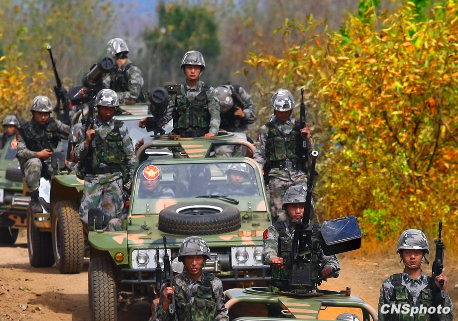 解放軍濟(jì)南軍區(qū)“前鋒-2009A”軍事演習(xí),將于10月21日在某合同戰(zhàn)術(shù)訓(xùn)練基地舉行,圖為即將參加演習(xí)的空降兵部隊(duì)10月20日在進(jìn)行針對性訓(xùn)練。這次演習(xí)主要是由兵力兵器數(shù)量規(guī)模向信息火力效能聚優(yōu)轉(zhuǎn)變、指揮的重心由主攻方向上的重點(diǎn)突破向作戰(zhàn)關(guān)節(jié)要害的體系毀癱轉(zhuǎn)變、火力的運(yùn)用由概略粗放決策向科學(xué)精細(xì)籌劃轉(zhuǎn)變、協(xié)同的重點(diǎn)由地面步坦行動(dòng)向陸空火力協(xié)調(diào)轉(zhuǎn)變、行動(dòng)的控制由時(shí)間位置推進(jìn)量向效果態(tài)勢達(dá)成度轉(zhuǎn)變、作戰(zhàn)的目的由殲敵奪地向控要制權(quán)轉(zhuǎn)變。 中新社發(fā) 宋吉河 攝