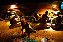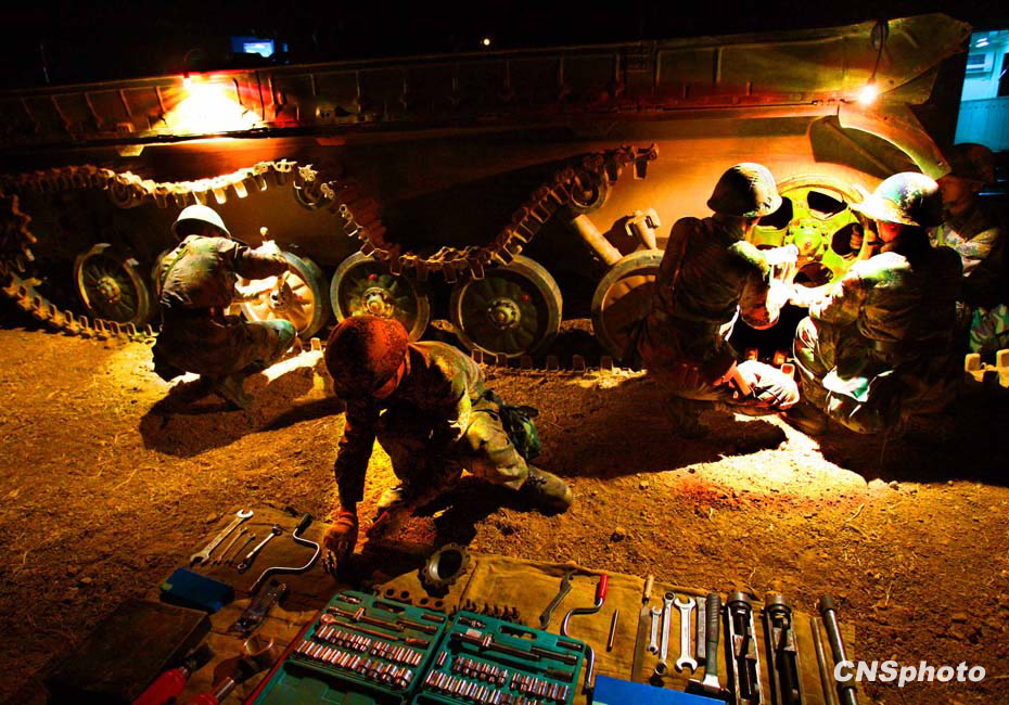 當(dāng)晚國(guó)防大學(xué)防務(wù)學(xué)院、空軍指揮學(xué)院的外軍學(xué)員,以及英國(guó)、以色列、土耳其、巴基斯坦等國(guó)軍事觀察員親臨現(xiàn)場(chǎng)觀摩了后勤保障戰(zhàn)斗準(zhǔn)備、自行榴彈炮占領(lǐng)陣地、裝甲車輛“摸黑”開進(jìn)等戰(zhàn)斗要素。圖為戰(zhàn)地?fù)屝扪b甲戰(zhàn)車。中新社發(fā) 宋吉河 攝