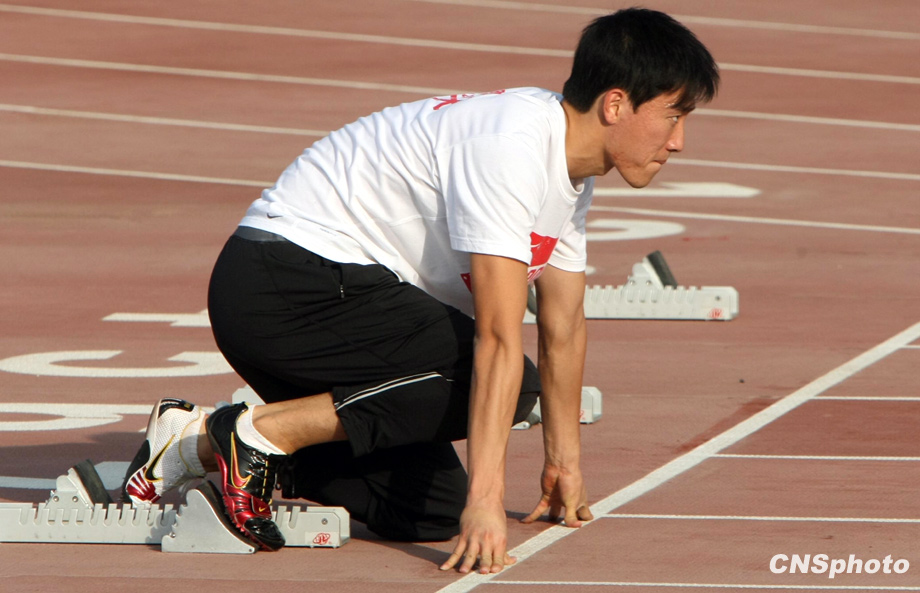10月22日下午,“飛人”劉翔亮相濟南奧體中心田徑訓練場,在教練孫海平的帶領下,輕松備戰全運會。來源:中國新聞網