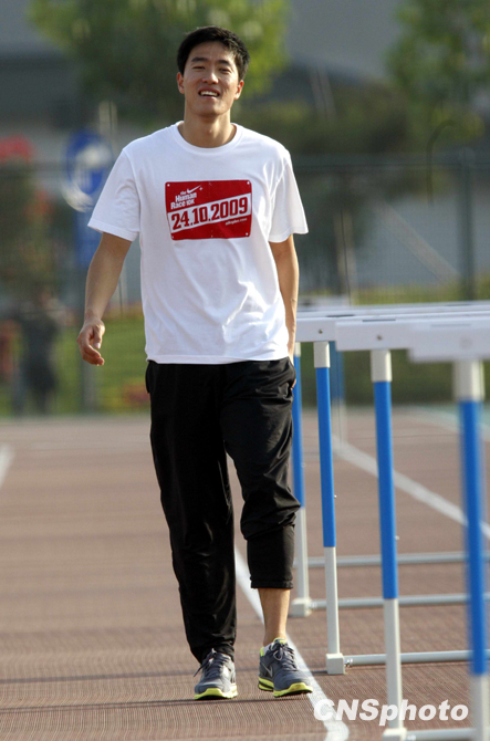 10月22日下午,“飛人”劉翔亮相濟南奧體中心田徑訓練場,在教練孫海平的帶領下,輕松備戰全運會。來源:中國新聞網
