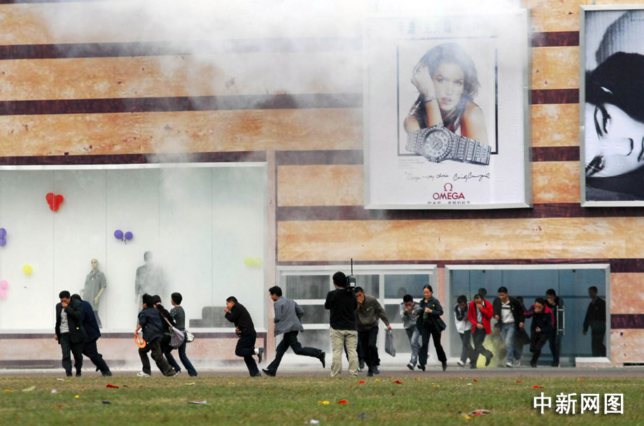 首先進(jìn)行演練的是處置化學(xué)恐怖襲擊事件。為制造混亂恐慌,影響重慶市安全穩(wěn)定大局,某恐怖組織派出的2名恐怖分子在重慶先鋒百貨商場投放了化學(xué)毒劑,各應(yīng)急救援力量奉命進(jìn)行緊急處置。