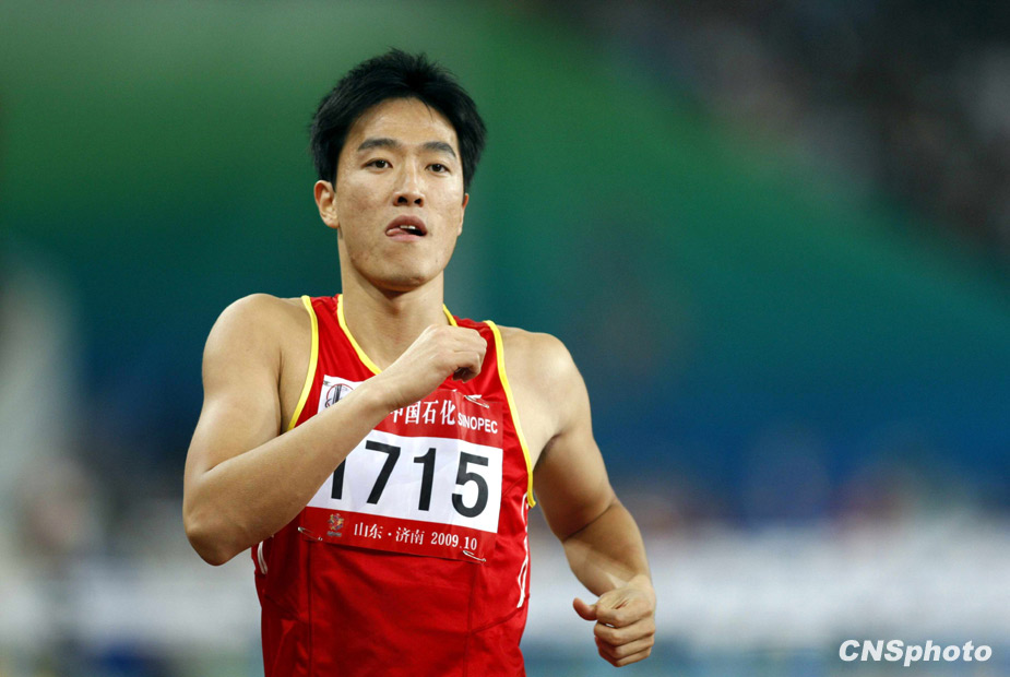10月24日晚,全運會110米欄預賽在濟南奧體中心舉行,“飛人”劉翔以13秒75成績輕松晉級決賽。來源:中國新聞網