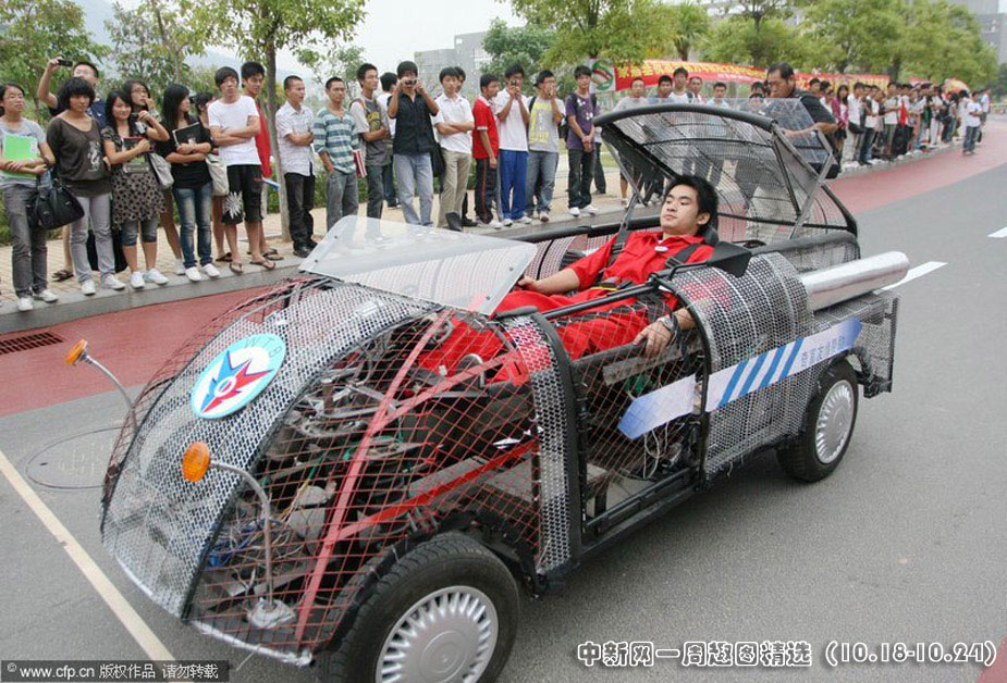 2009年10月20日下午,廈門理工學院舉行的“首屆汽車設計大賽”動態賽,參賽的11支隊伍顛覆了大家對傳統汽車的想象,“躺著開的概念車”等各種“奇思妙想”一應俱全。莫風 攝>>點擊觀看詳細內容