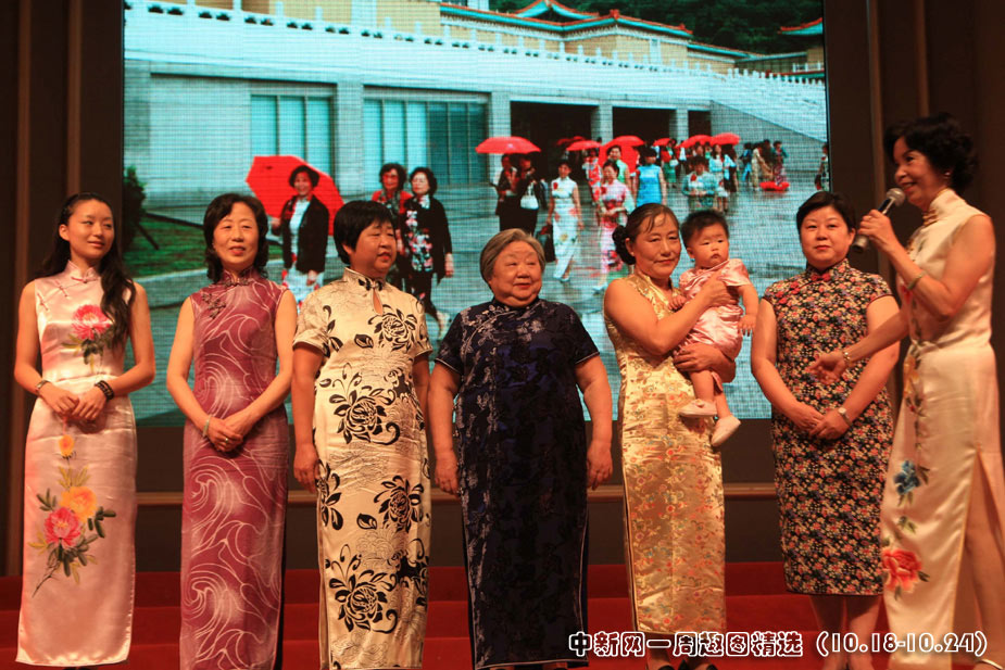 10月22日,上海一家庭七位女性,四代同堂登臺演繹旗袍魅力,其中包括一歲女孩和七十七歲阿婆,成為當日《旗袍,向世博走來》大型匯報演示中最引人注目的一幕。中新社發(fā) 潘索菲 攝 >>點擊觀看詳細內容