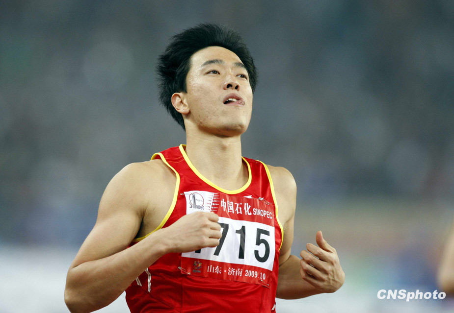 10月25日,在全運會田徑男子110米欄決賽中,上海代表團選手、“中國飛人”劉翔以13秒34的成績勇奪冠軍,同時也成就了其全運會該項目三連冠的偉業(yè)。中新社發(fā) 張宇 攝