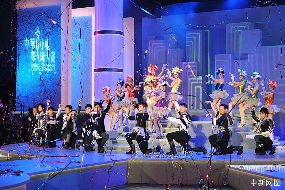 10月31日晚,“2009中華小姐環球大賽”總決賽上,12名入圍總決賽的佳麗身著迷你裙大秀性感爵士舞。中新網記者 金碩 攝