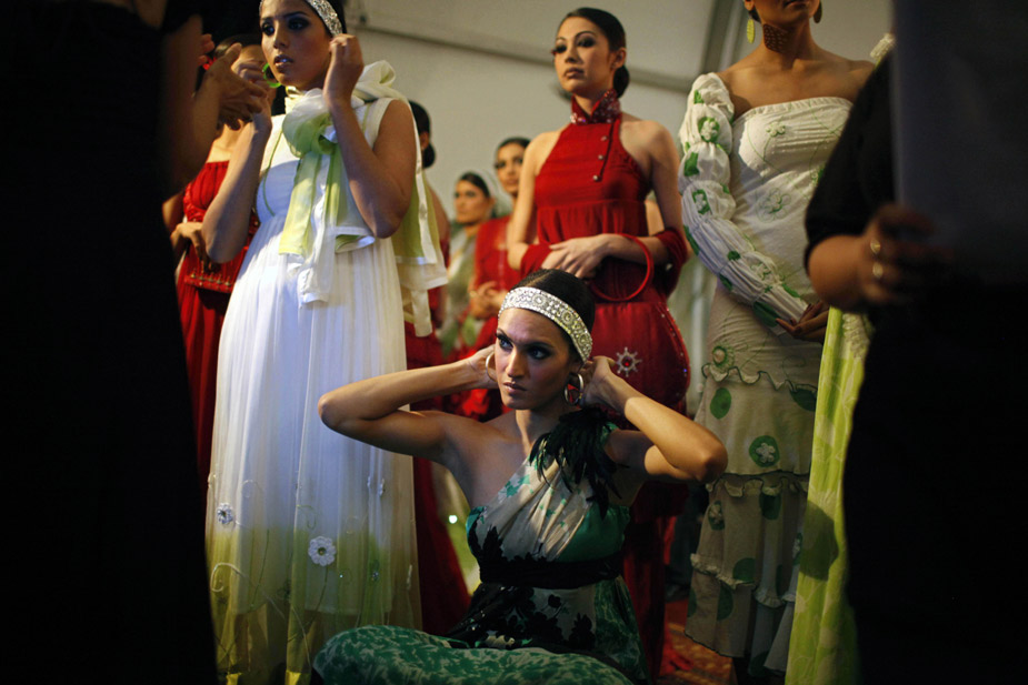 11月5日,巴基斯坦第一屆時裝周在卡拉奇拉開帷幕。美女模特們身著裸露雙肩和肚臍的非伊斯蘭傳統(tǒng)服裝在T臺上走秀。