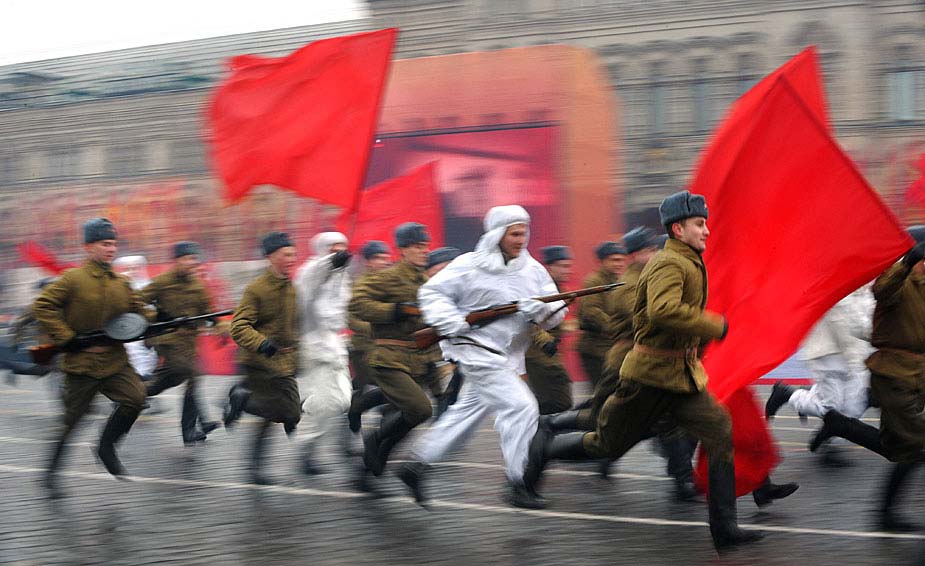 周六(7日),俄羅斯士兵身穿二戰時期的軍服在莫斯科紅場舉行閱兵閱兵式紀念1941年紅場閱兵。來源:中國新聞網