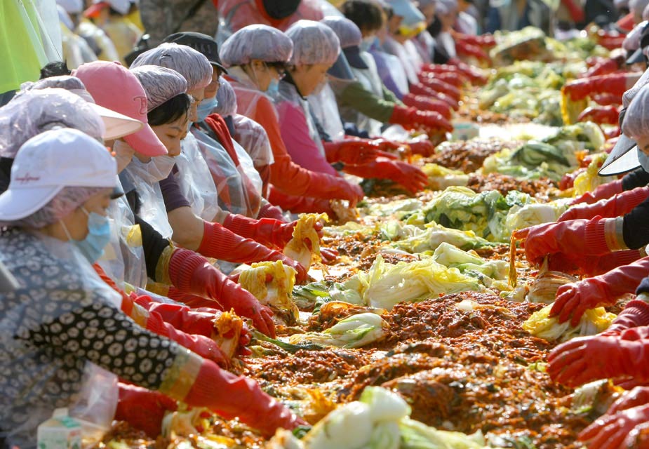 11月9日,約2700名韓國志愿者在首爾一所學校的操場上制作泡菜。