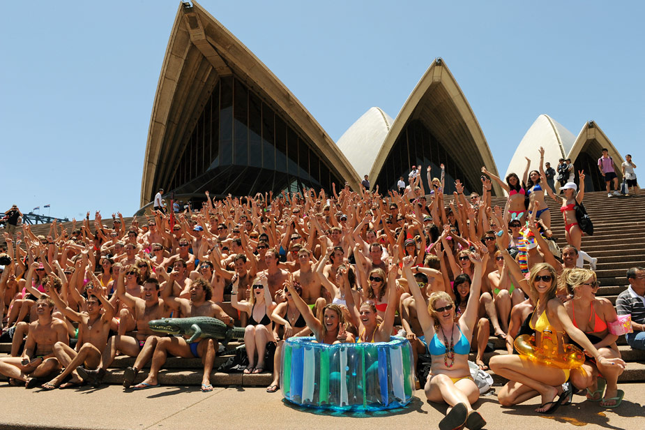11月12日,約1000人身穿泳裝在悉尼街頭游行,欲打破287人近日在南非創造的最大規模泳裝游行的世界紀錄。