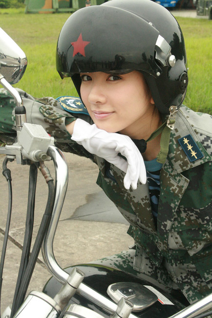 11月12日,北京,為配合慶祝人民空軍成立60周年活動,由八一電影制片廠著名導演寧海強擔綱執導,黃奕主演的軍事動作大片電影《殲十出擊》即將上映。在這部大量表現戰斗機空戰場面的軍事題材電影里,黃奕在片中的主要工作是檢查維護殲十戰斗機的機械運轉,保證安全飛行,就是通常所說的機務工作。穿上正統的空軍女上尉軍服,肩扛一杠三星,英姿颯爽的黃奕顯得無比自豪。