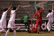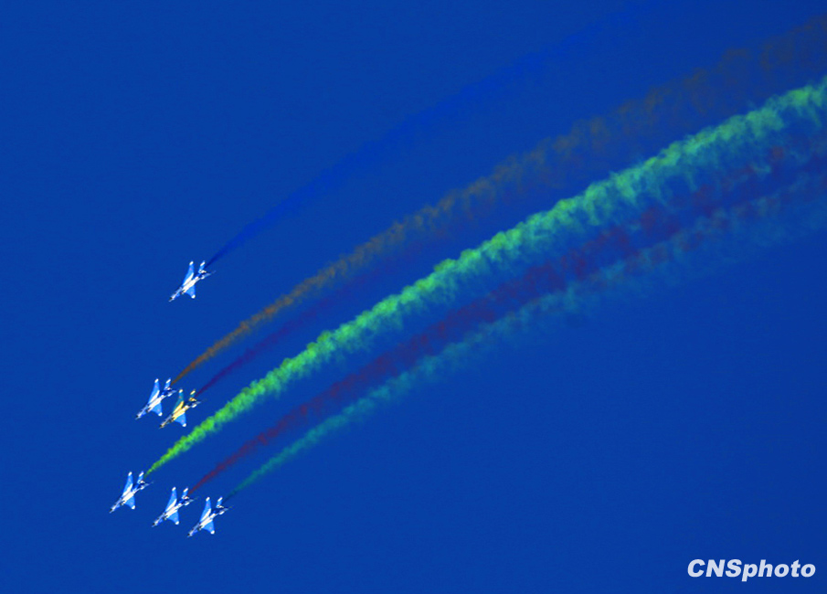 慶祝中國人民解放軍空軍成立60周年飛行表演,11月15日上午在北京沙河機場舉行。表演按八一飛行表演隊4架殲-10飛機表演12個動作和6架殲-7GB飛機表演15個動作,分四機對頭交叉、四機菱形隊大坡度盤旋、單機小速度平飛等27個動作,其中四機對頭交叉動作是這次表演中技術難度較大的動作之一,這是國產三代飛機和國產二代飛機首次同場競技表演。圖為殲-7GB進行表演。中新社發 宋吉河 攝