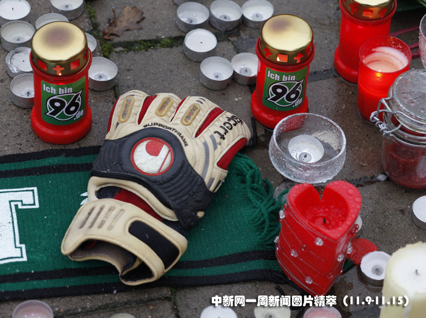 11日(周三),德國球迷紀念10日與火車相撞自殺身亡的德國男足門將恩克。圖片來源:中國新聞網