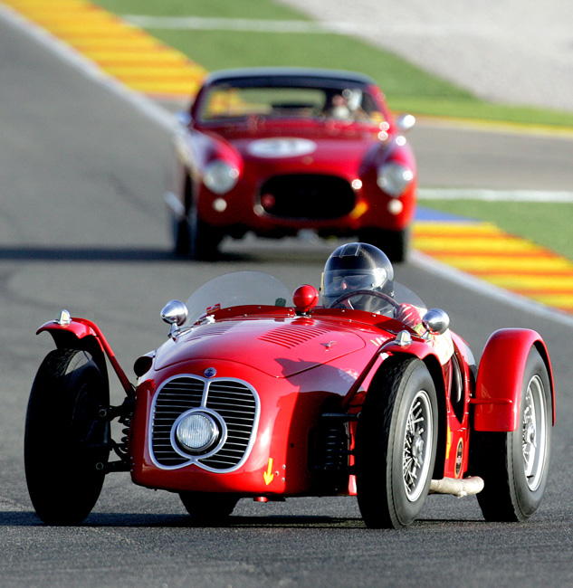 11月15日,法拉利老爺車挑戰賽在西班牙瓦倫西亞賽道舉辦,眾多老款法拉利賽車在賽場爭相亮相。圖片來源:中國新聞網