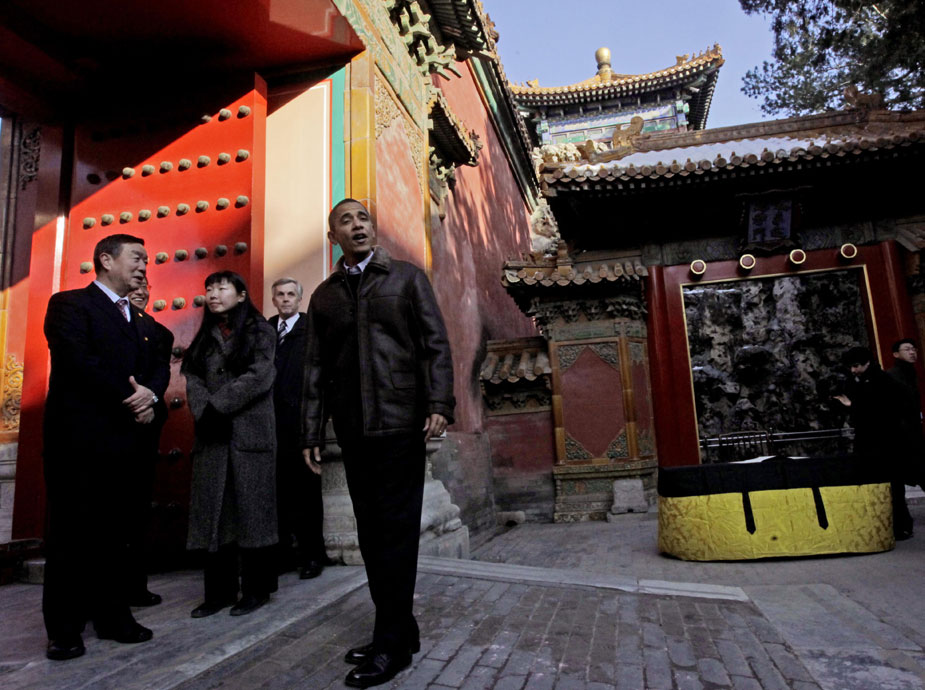 11月17日,正在中國進行國事訪問的美國總統奧巴馬一行參觀北京故宮。圖片來源:中國新聞網