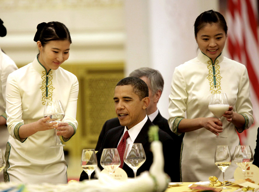 國家主席胡錦濤11月17日晚在北京人民大會舉行盛大宴會,歡迎來華訪問的美國總統奧巴馬。