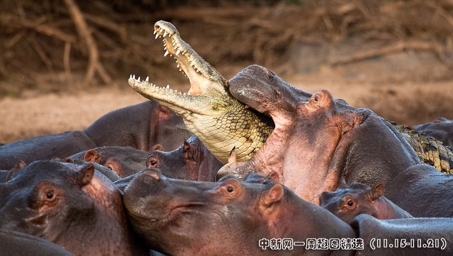 一條鱷魚悄悄混入了正在河里洗澡的河馬中,它很快就被敏感的母河馬發(fā)現(xiàn)。憤怒的河馬們立刻對它發(fā)起了猛烈地攻擊,這條冒失的鱷魚很快死于非命。圖片來源:中國新聞網(wǎng)>>點擊觀看詳細(xì)內(nèi)容