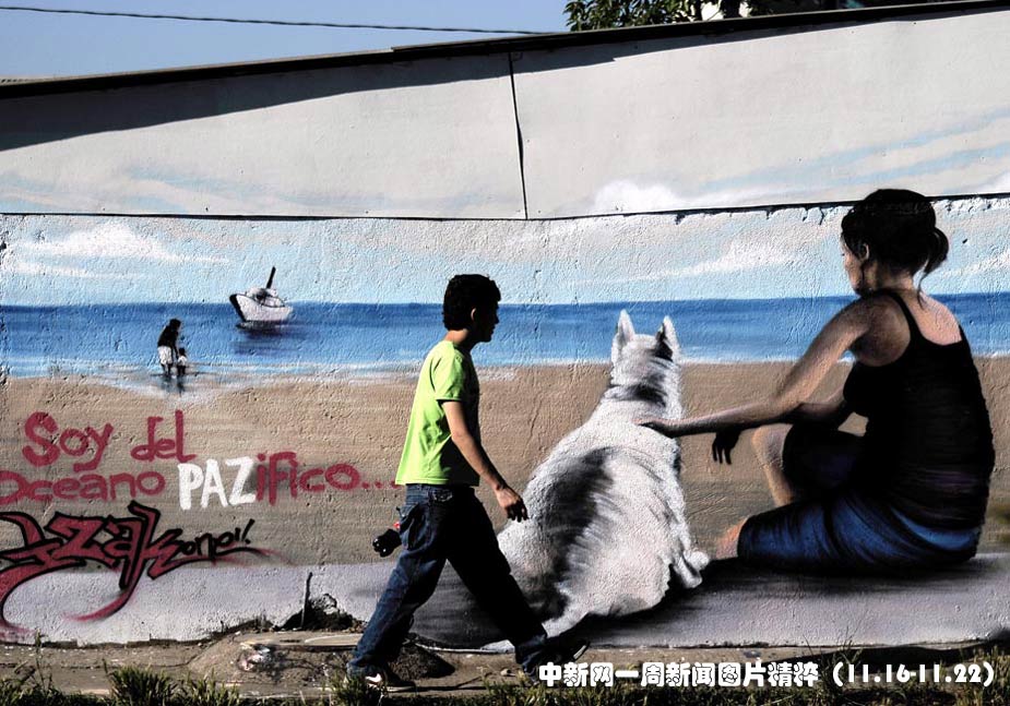 11月15日,智利圣地亞哥近千名藝術家繪制了1800米長的涂鴉墻,打破了吉尼斯世界紀錄。圖片來源:中國新聞網(wǎng)