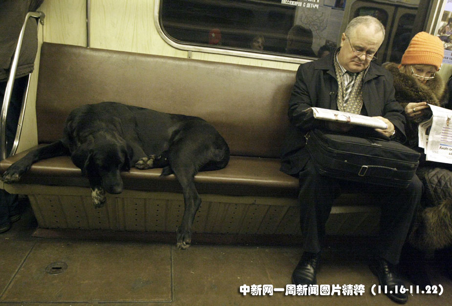 2009年11月18日,俄羅斯首都莫斯科的一只流浪狗與乘客同乘地鐵。圖片來源:中國新聞網