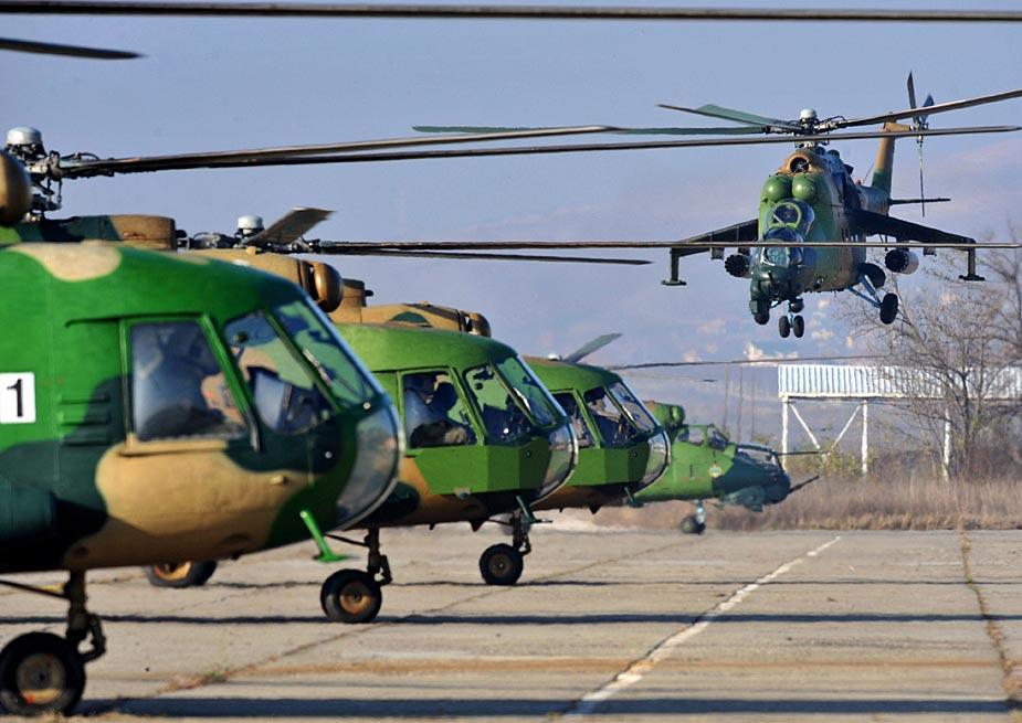 11月26日,馬其頓軍隊(duì)在馬其頓中部舉行了大規(guī)模的反恐軍演。包括MI-24型武裝直升機(jī)等多種重武器參加了這次軍事演習(xí)。圖片來源:中國新聞網(wǎng)