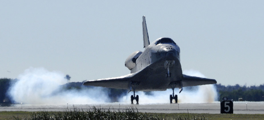 美國“阿特蘭蒂斯”號航天飛機27日平安降落在佛羅里達州肯尼迪航天中心,結束了為期11天的國際空間站之旅。圖片來源:中國新聞網