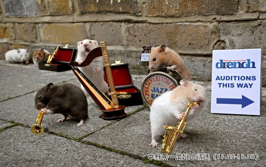近日,一群小倉鼠在倫敦一家咖啡館外“吹奏”迷你樂器,為一個電視節(jié)目試鏡。圖片來源:中國新聞網(wǎng)>>點(diǎn)擊觀看詳細(xì)內(nèi)容