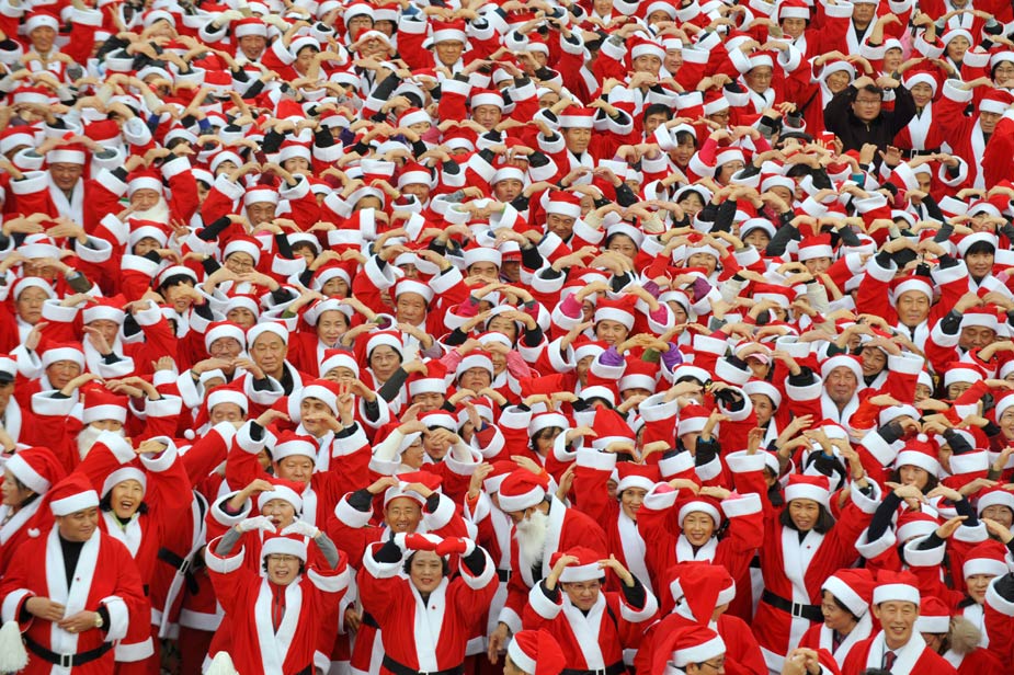 12月1日,韓國首都首爾市,一千多名“圣誕老人”舉行游行為社會慈善項目籌款。圖片來源:中國新聞網