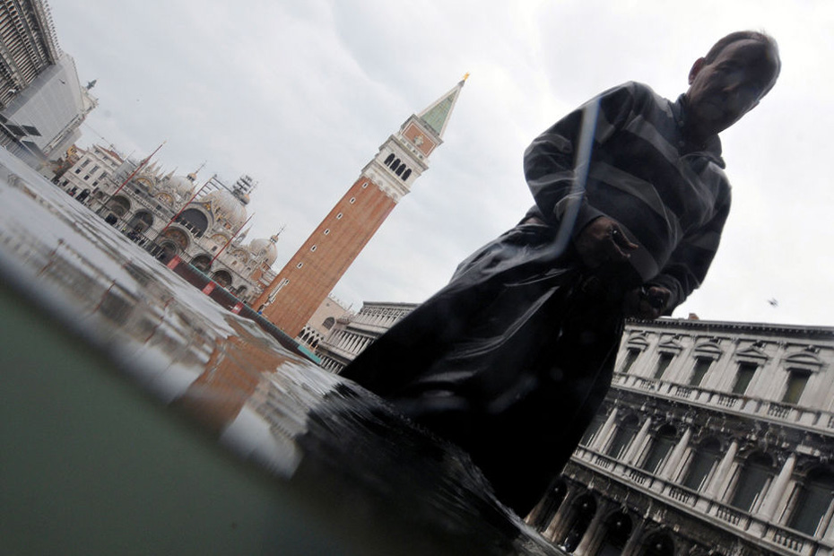 11月30日,意大利水城威尼斯受潮汐和一股強(qiáng)烈的熱帶風(fēng)暴影響再次被洪水淹沒,部分地區(qū)最高水位達(dá)到1.31米。圖片來源:中國新聞網(wǎng)
