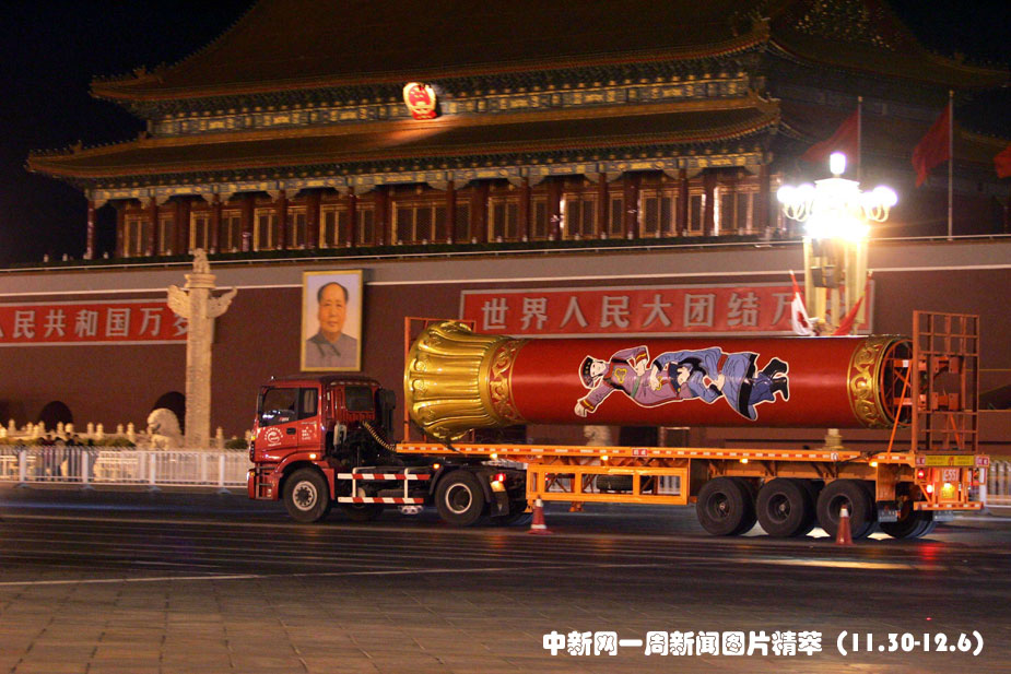 12月3日凌晨,北京天安門廣場上象征民族大團結(jié)的56根民族團結(jié)柱,經(jīng)北京住總集團等單位的施工,已從天安門廣場全部拆除,進行回廠維護。國慶六十周年慶典期間,分列在天安門廣場兩側(cè)的民族團結(jié)柱受到全國各族人民的喜愛,成為節(jié)日一道亮麗的風(fēng)景。為了永久留存這56根民族團結(jié)柱,北京市政府決定將它們拆除遷移回廠,進行妥善維護后再擇地安放。圖片來源:中國新聞網(wǎng)