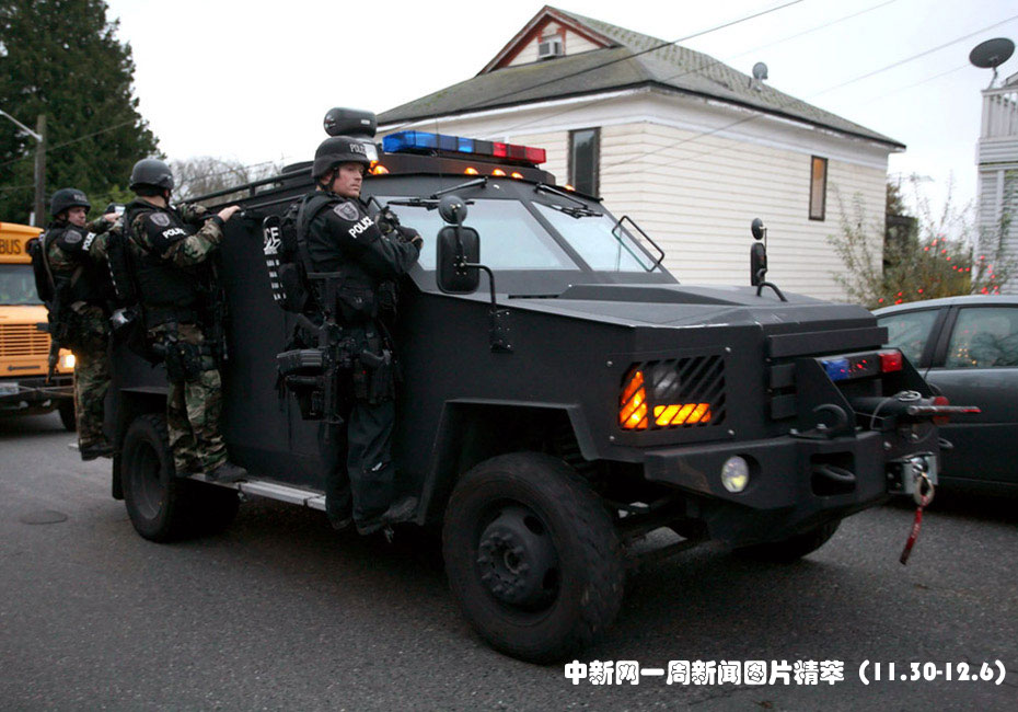 11月29日,美國4名警察在華盛頓州空軍基地附近一間咖啡館被兩名槍手槍擊,4人當場死亡。美國軍方派遣反恐特警小組展開大規模追查。圖片來源:中國新聞網