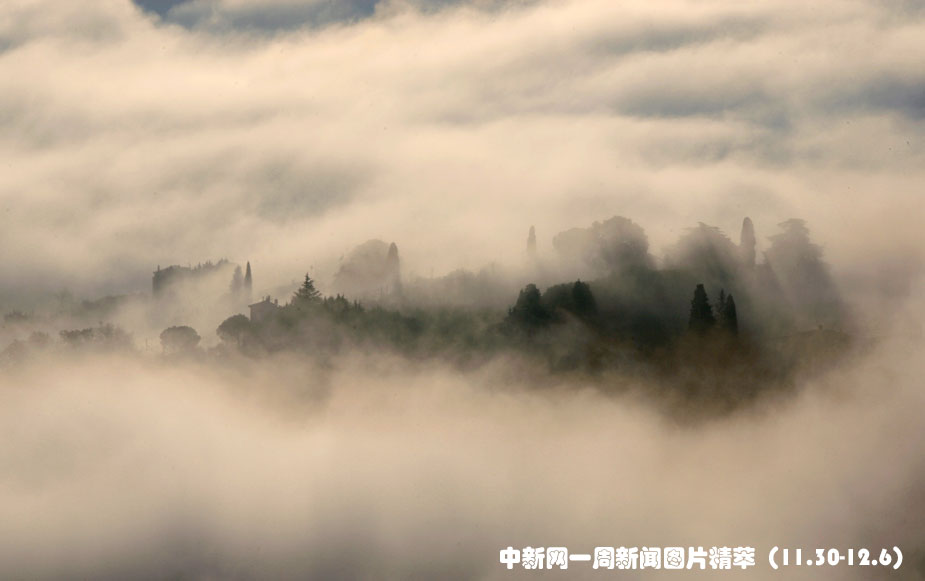 12月2日,大霧籠罩了意大利佩魯賈。圖片來源:中國新聞網