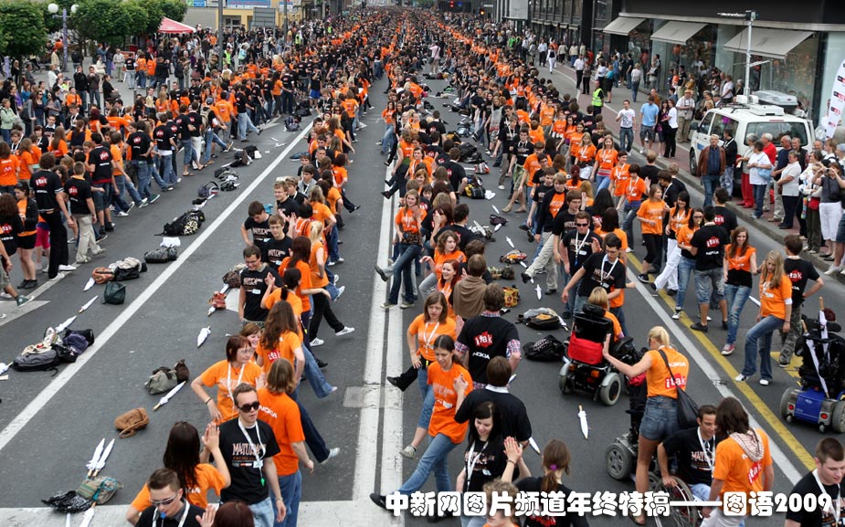 同地跳舞人數(shù)最多:5月15日,斯洛文尼亞盧布爾雅那城市廣場31,800高中畢業(yè)生同跳時跳舞打破了同一地區(qū)跳舞的吉尼斯世界紀錄。圖片來源:中國新聞網(wǎng)
