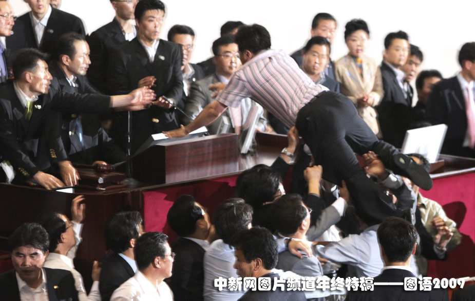 7月22日,韓國首爾議會上數(shù)百名議員發(fā)生沖突。