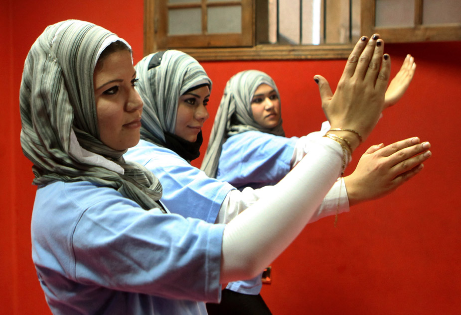 近日,埃及“女子警衛(wèi)”在開羅郊區(qū)一個(gè)體育館進(jìn)行訓(xùn)練。她們專為有一定社會(huì)地位和名氣的女性提供服務(wù)。圖片來源:中國新聞網(wǎng)