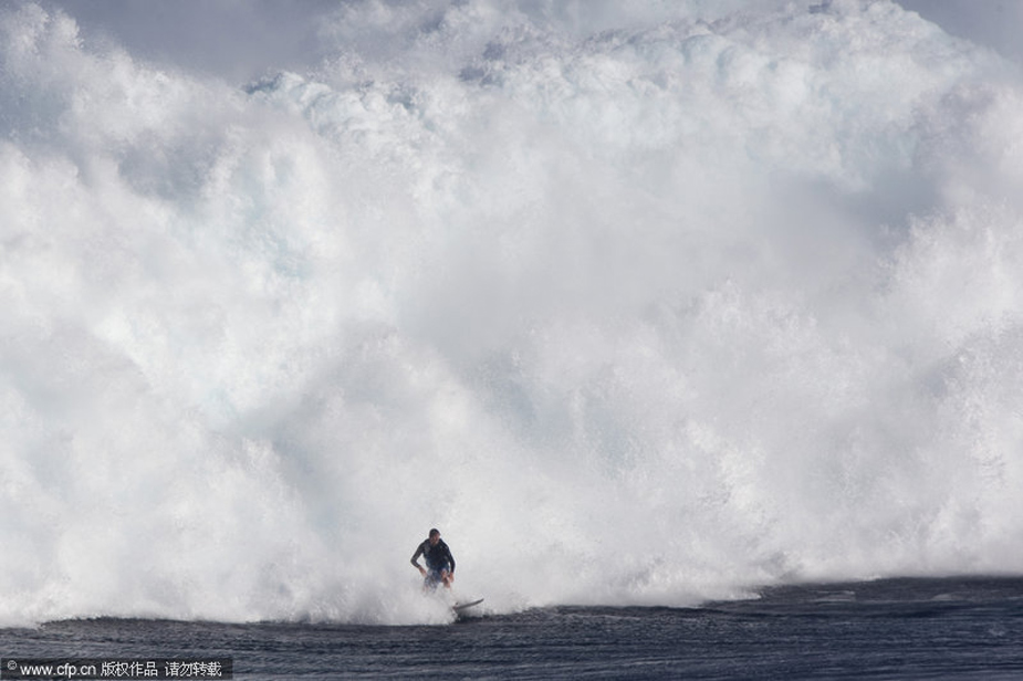 12月8日,美國夏威夷出現(xiàn)15米高罕見巨浪,一些勇敢的沖浪者都來到這里進(jìn)行挑戰(zhàn)。圖片來源:CFP