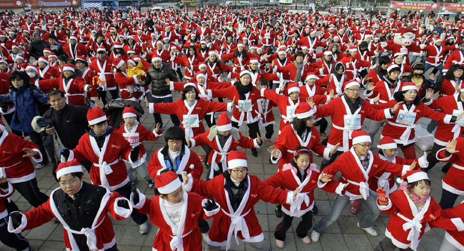 12月12日,“圣誕老人”馬拉松賽跑當日在首爾舉行。超過一千名“圣誕老人”參加了此次長跑活動。