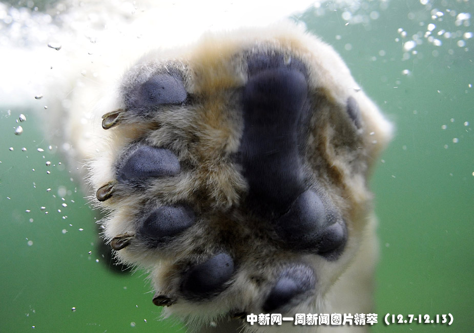 8日(周二),在德國蓋爾森基興的動物園中,一頭熊在水中玩耍。圖片來源:中國新聞網