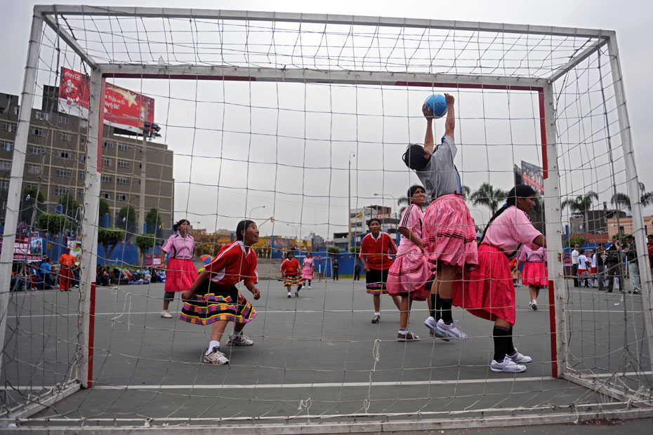 12月12日,秘魯印第安婦女在利馬國家體育場外舉辦了一場特別的足球賽,所有的球員均身著傳統服飾光腳上陣妙趣橫生。圖片來源:中國新聞網