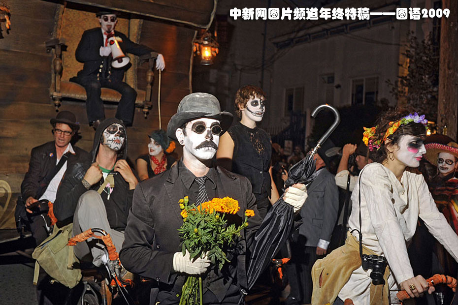 美國舊金山居民歡慶“亡靈節”——11月2日,美國舊金山居民扮成鬼怪模樣慶祝“亡靈節”。“亡靈節”是拉美地區的傳統節日,類似于中國的清明節。