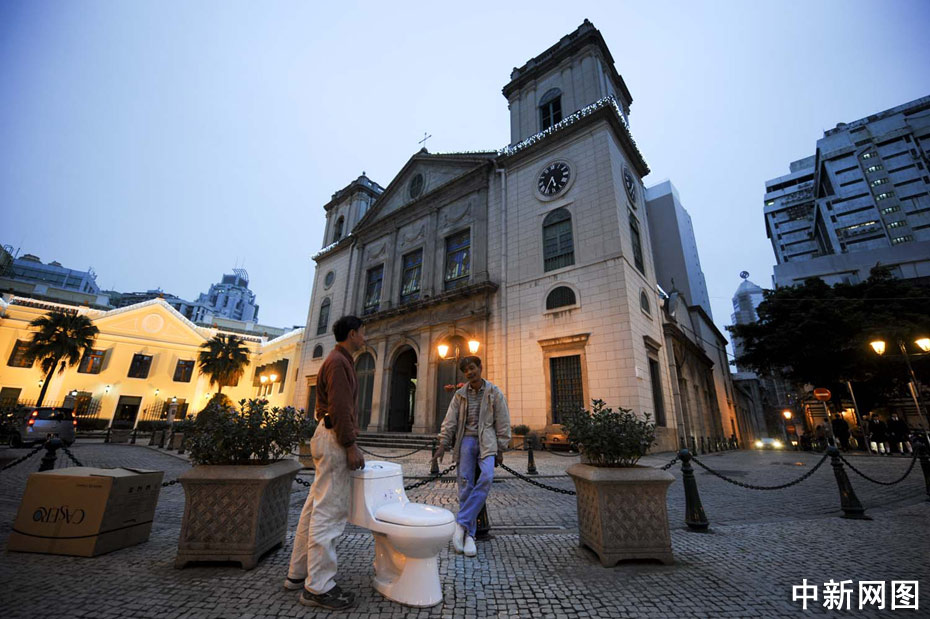 居民在澳門主教座堂前。中新社記者 廖攀 攝