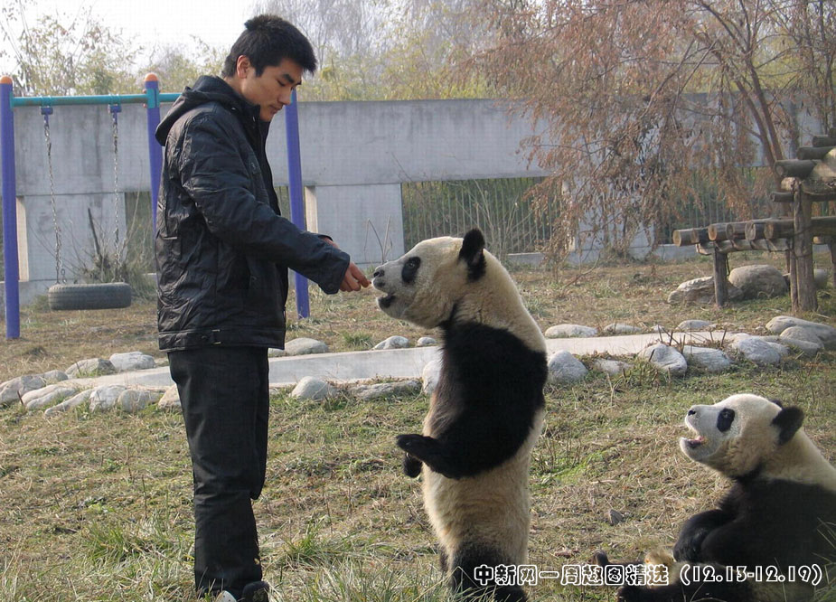 十二月十八日,陜西省珍稀野生動物搶救飼養研究中心里,二00八年八月人工繁育的兩只大熊貓在嬉戲。圖片來源:中國新聞網>>點擊觀看詳細內容
